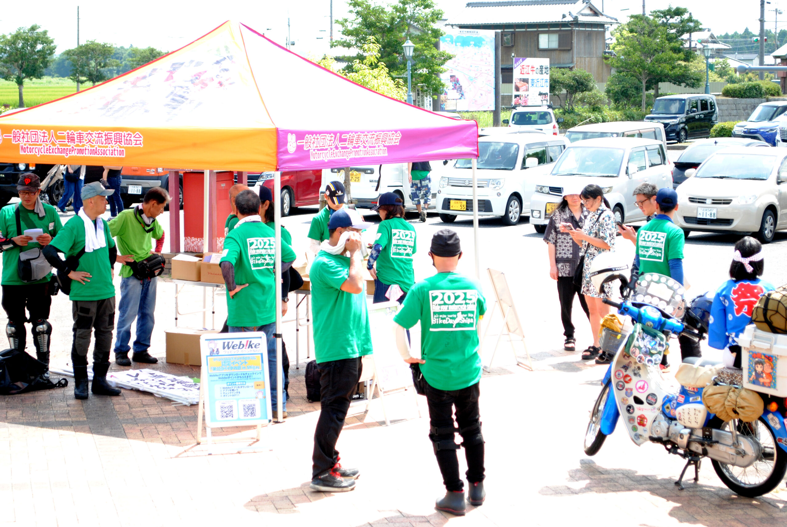 このバイクの日に合わせて一般社団法人二輪車交流振興協会では、その8/19の直前の土日に滋賀県の琵琶湖周辺の道の駅をめぐり安全啓発活動を実施されています。