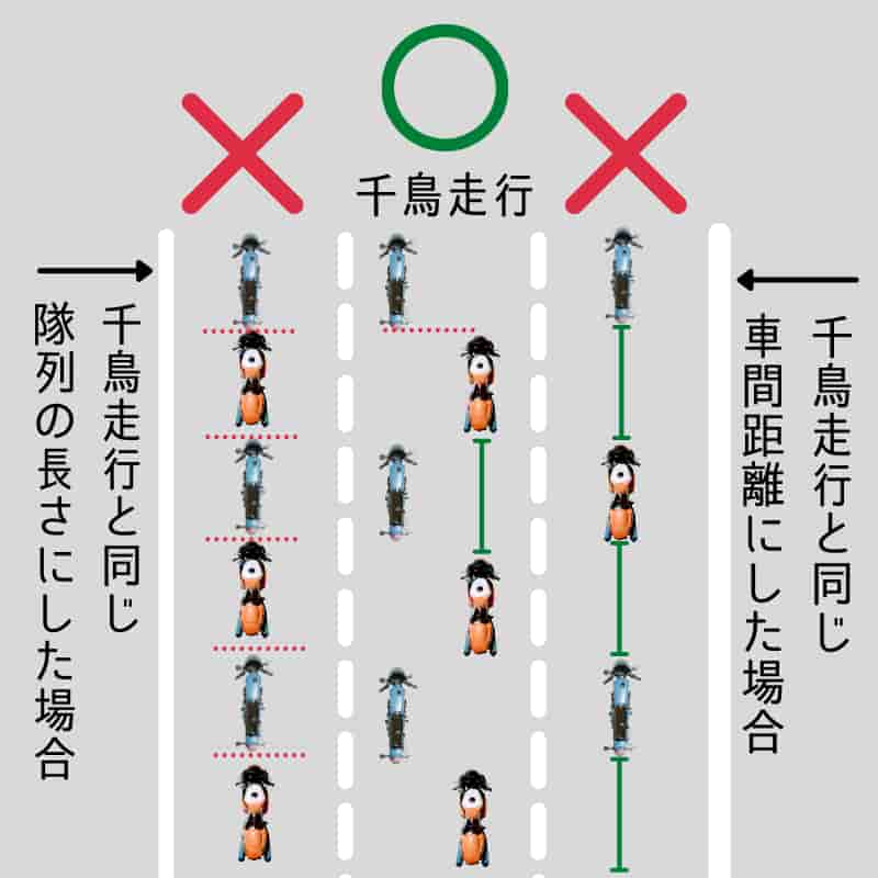 大人数での走行になるので千鳥走行にて走行。
